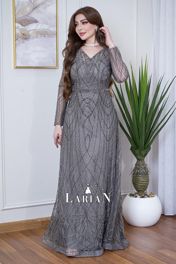 فستان رمادي غامق مطرز بالكامل بقصة فخمة من لاريان ستور فستان سهرة بلون رمادي غامق يعكس الرقي والفخامة. مزين بالكامل بتطريز لامع بتفاصيل دقيقة، يناسب المرأة الباحثة عن التميز في الحفلات الرسمية.
