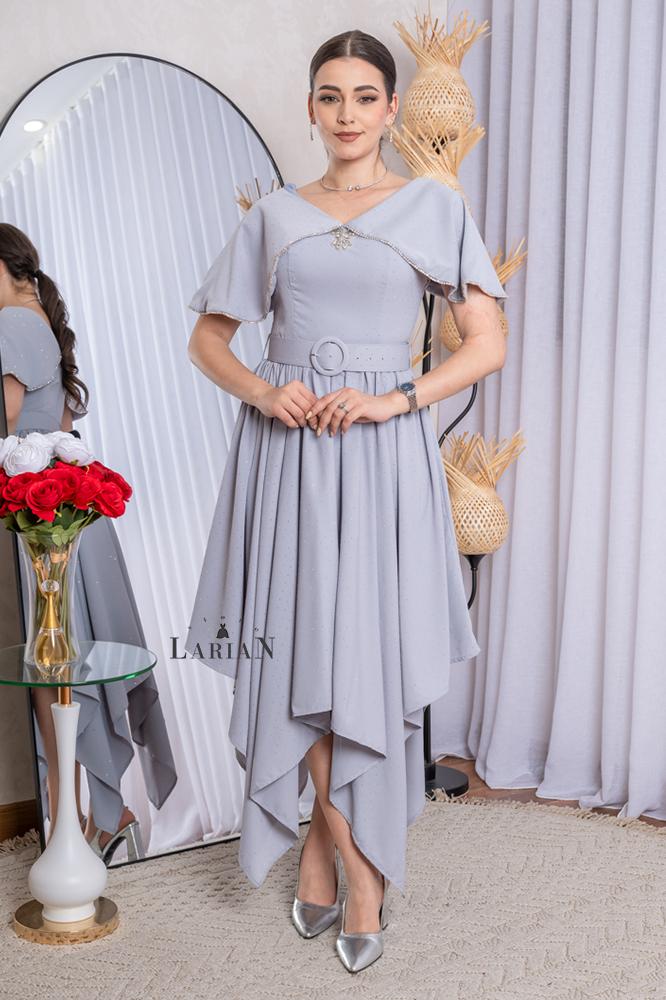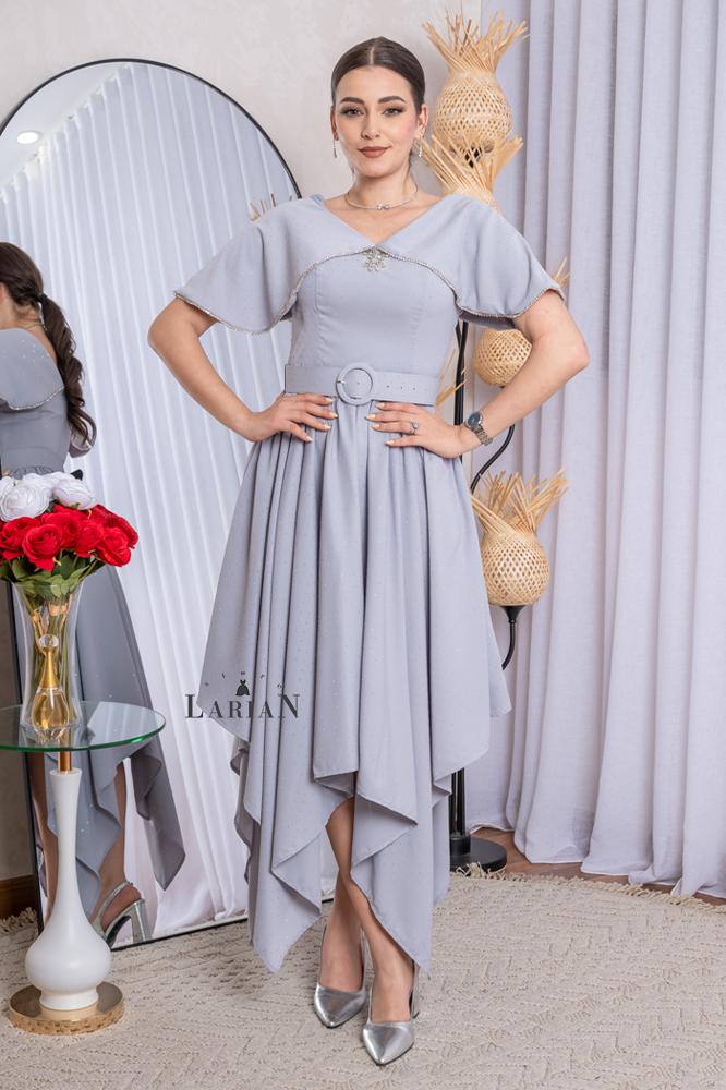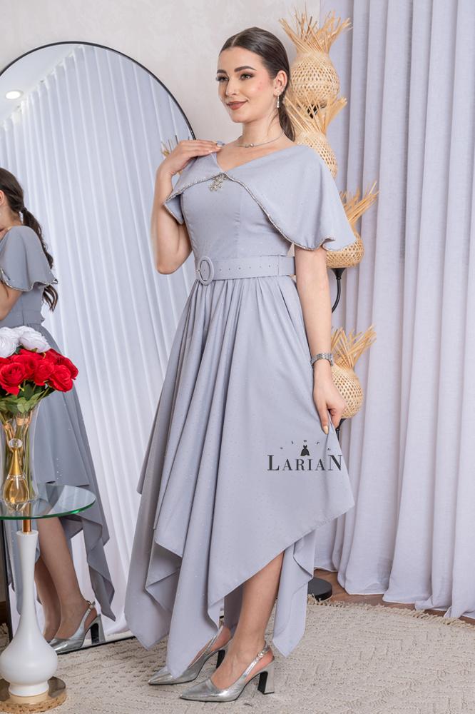 فستان ميدي ناعم بفصوص وحزام - لاريان ستور